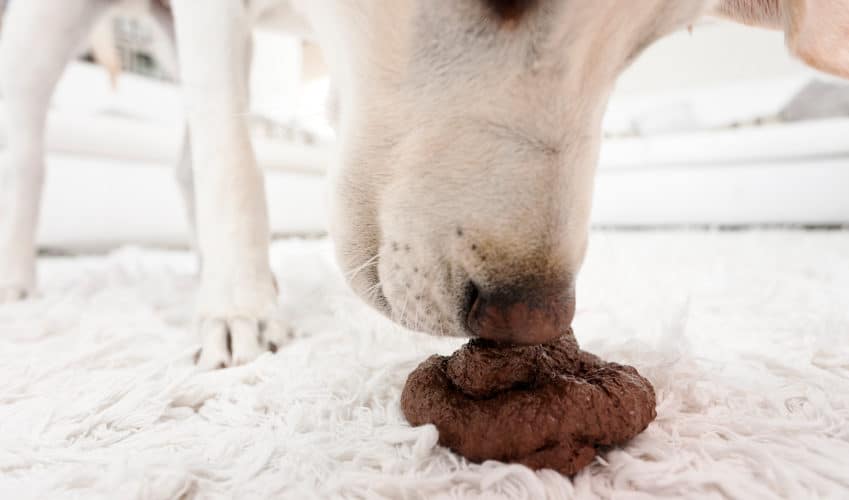Alimentação imprópria, vesmes que levam a deficiências nutricionais, fazendo o animal buscar nas fezes, reposição nutricional.